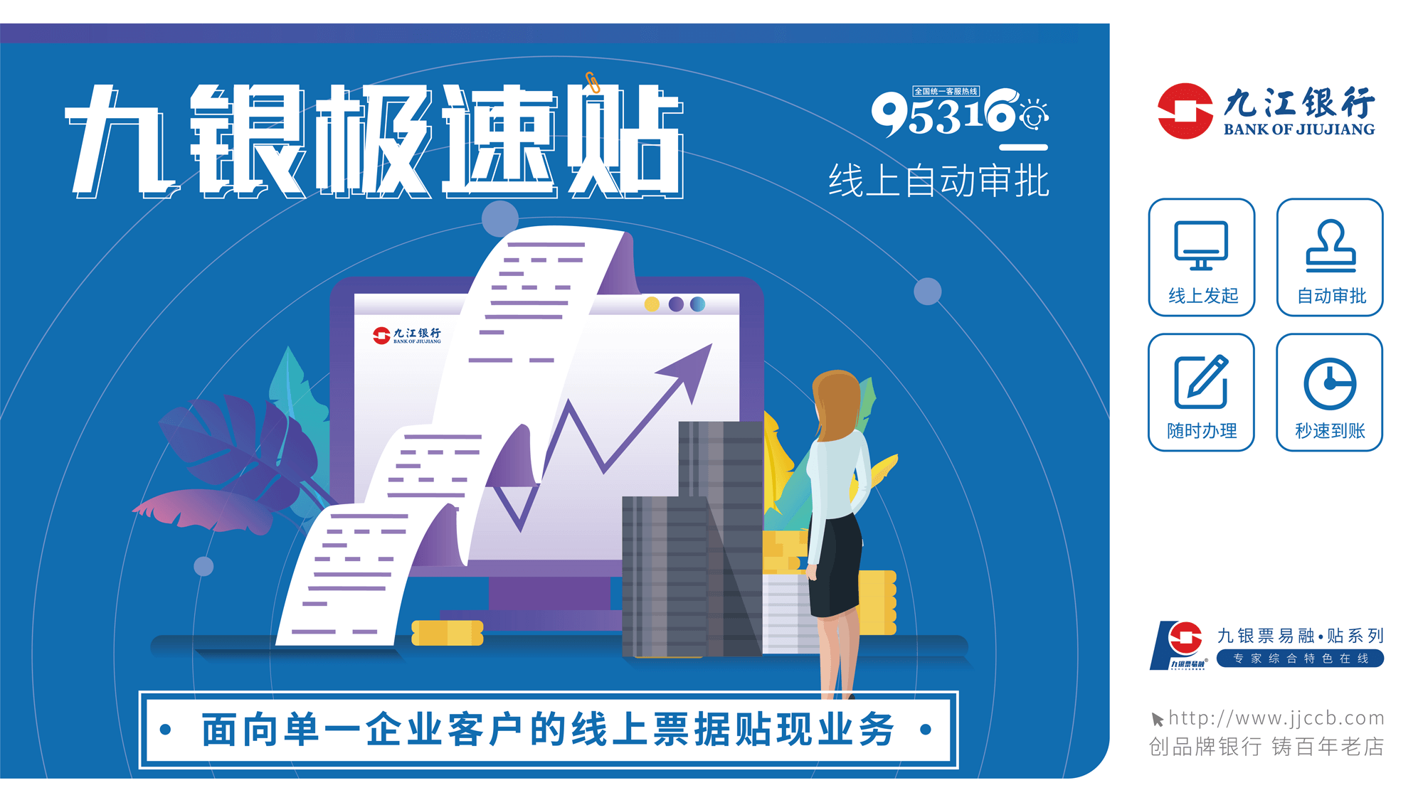 指九江銀行面向單一企業(yè)客戶的線上票據(jù)貼現(xiàn)業(yè)務(wù)。九江銀行為符合要求的企業(yè)客戶提供在線電子商業(yè)匯票貼現(xiàn)業(yè)務(wù),通過系統(tǒng)核驗(yàn)控制替代人工操作的方式,實(shí)現(xiàn)電子商業(yè)匯票貼現(xiàn)全流程自動(dòng)化處理。