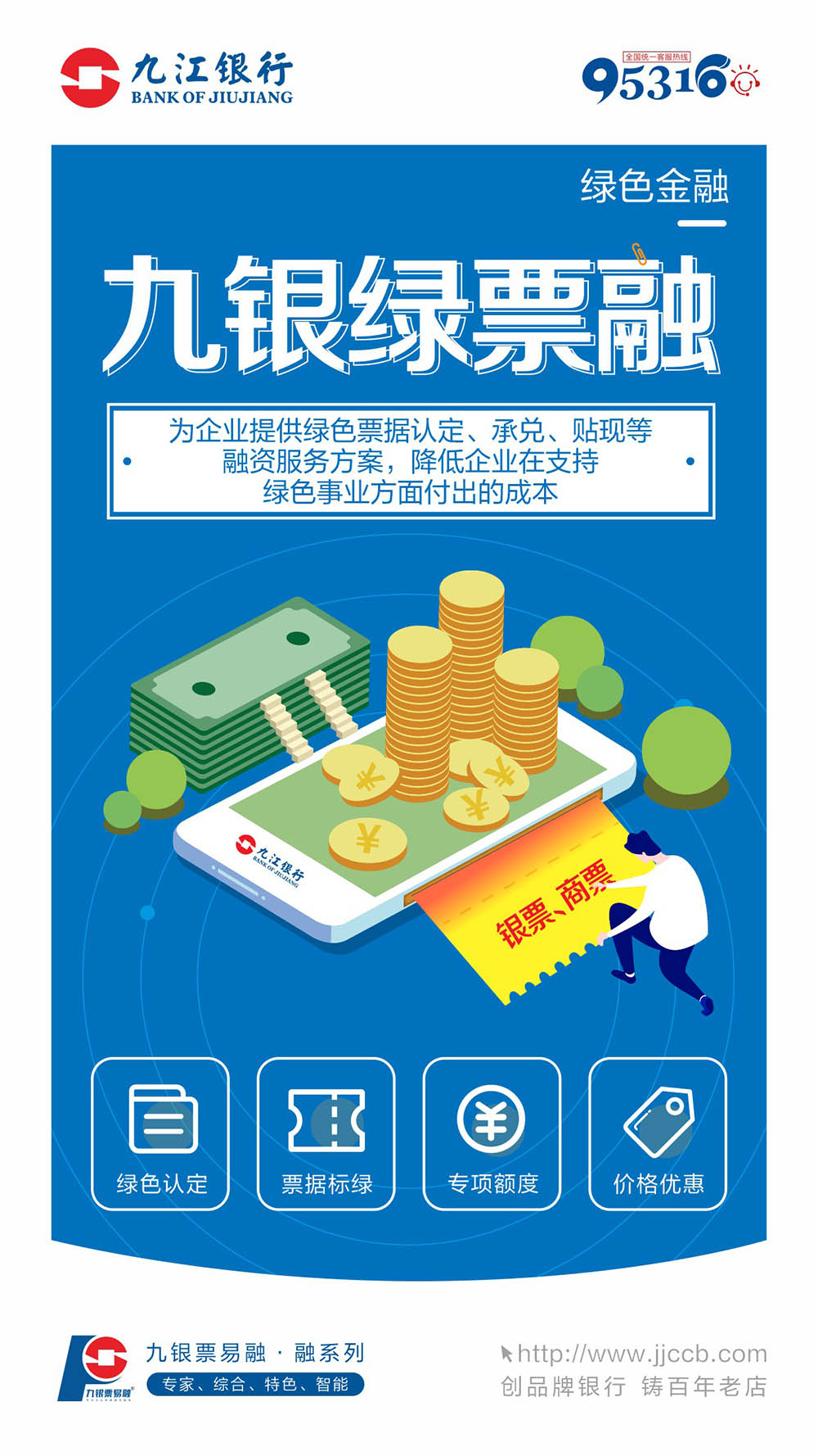 指九江銀行為企業(yè)客戶提供一攬子綠色票據(jù)認(rèn)定、綠色票據(jù)承兌及綠色票據(jù)貼現(xiàn)等融資服務(wù)方案,旨在降低企業(yè)在支持綠色事業(yè)方面付出的成本。